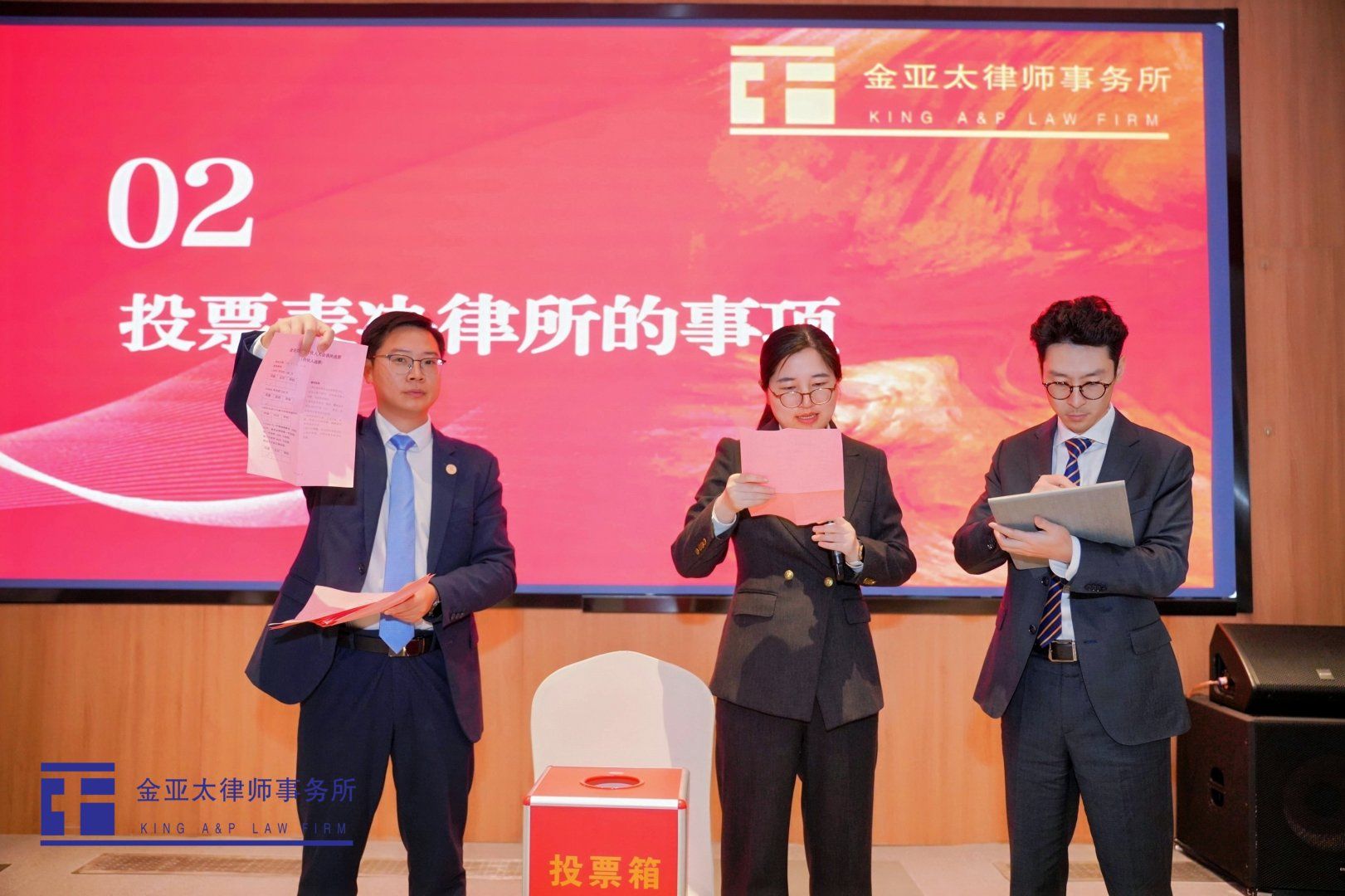 经过分组讨论、小组汇报后,全体合伙人就讨论的议题进行无记名投票表决,在严谨的无记名投票程序中,多项基于这些讨论共识形成的议题,如合伙人参与管理、合伙人权益与责任、人事任命、扶持青年律师发展等,获全票或高票通过,展现了空前统一的集体意志与对未来方向的坚定共识。