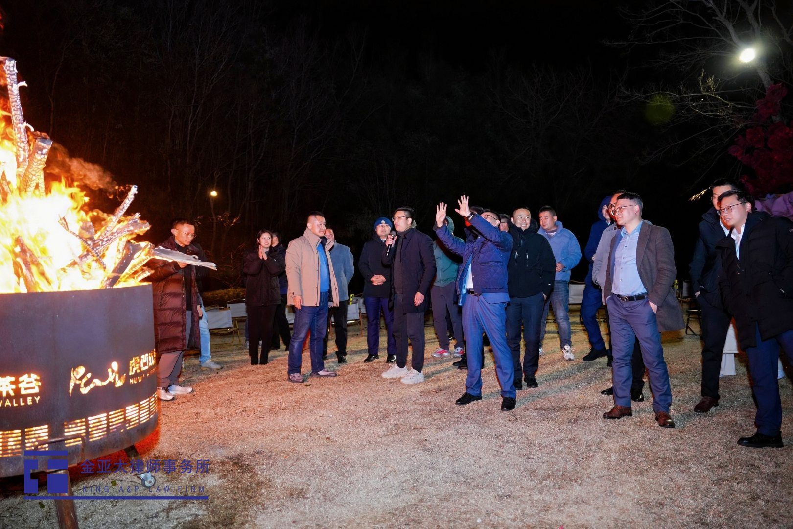 团建的夜晚,以一场盛大的篝火晚会开场。寒冷的冬夜,火焰冲天而起,热烈、明亮,各位合伙人手拉手围着篝火跳舞,推杯换盏,围炉夜话,彼此温暖。在炉火旁、星光下,我们再次重温了所训“保持自尊,做一个尊严的法律人;心存感激,感激生活和社会;互相欣赏,同事惺惺相惜;快乐工作,寓工作於生活;奉献情怀,人人为我,我为人人。”此情此景,正如古老的非洲谚语“一个人可以走得很快,但一群人才能走得更远。”