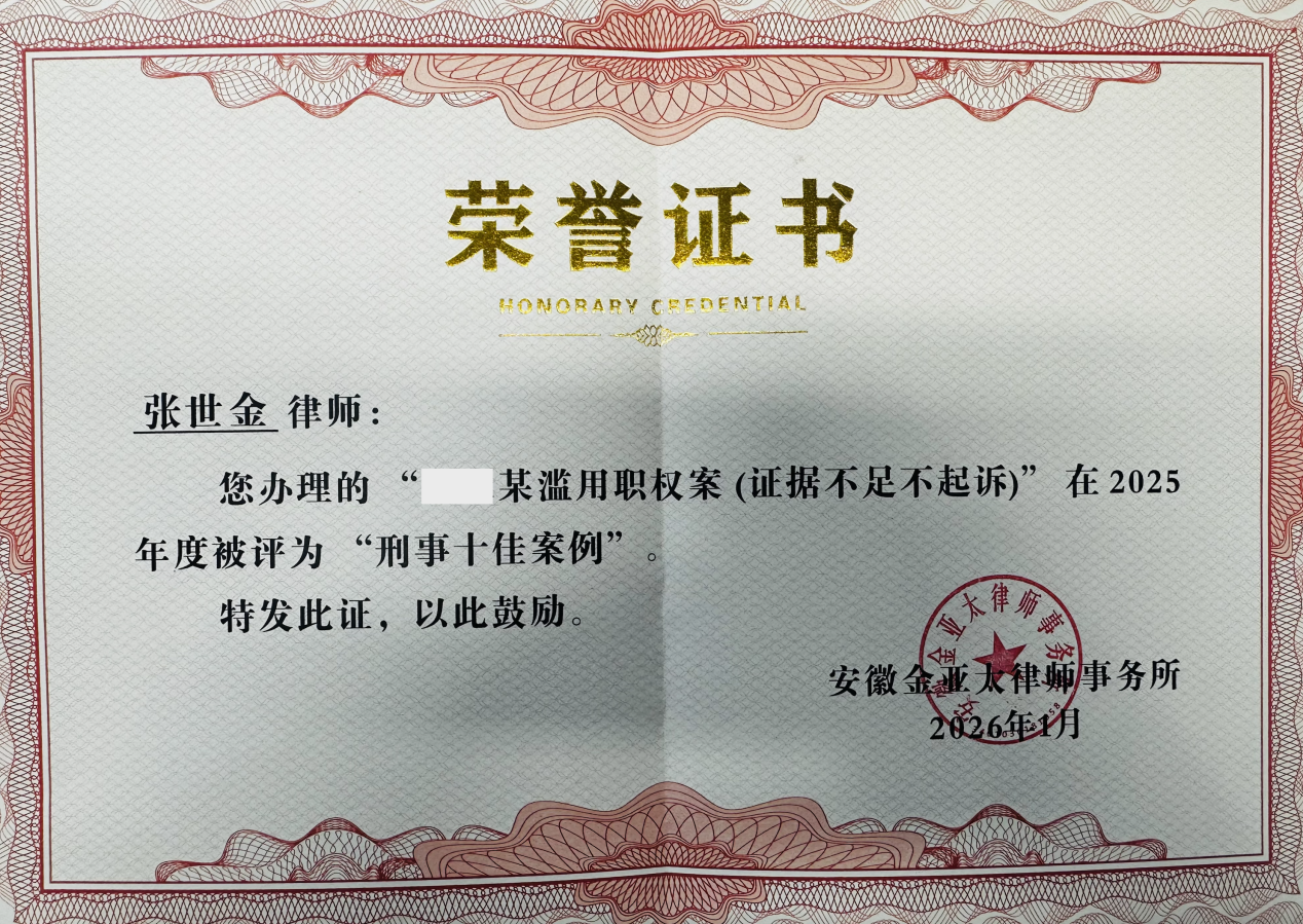 值得一提的是,本案被评选为金亚太律师事务所2025年度刑事十佳案例。