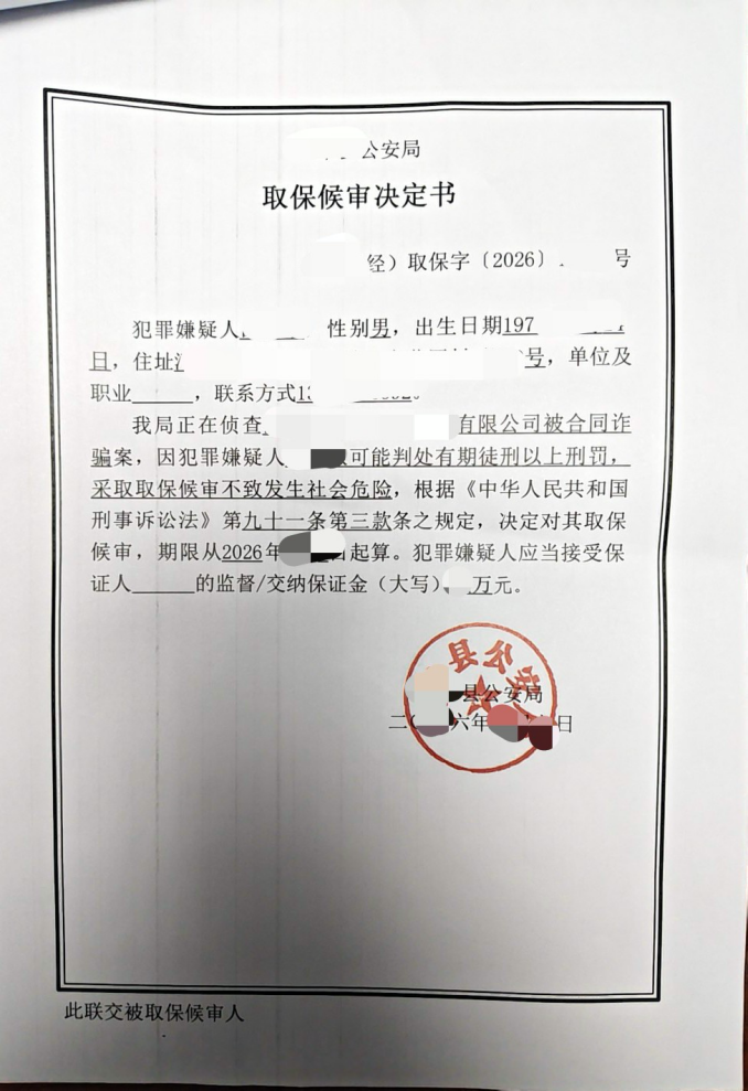 王非律师办理300万元合同诈骗罪取保候审