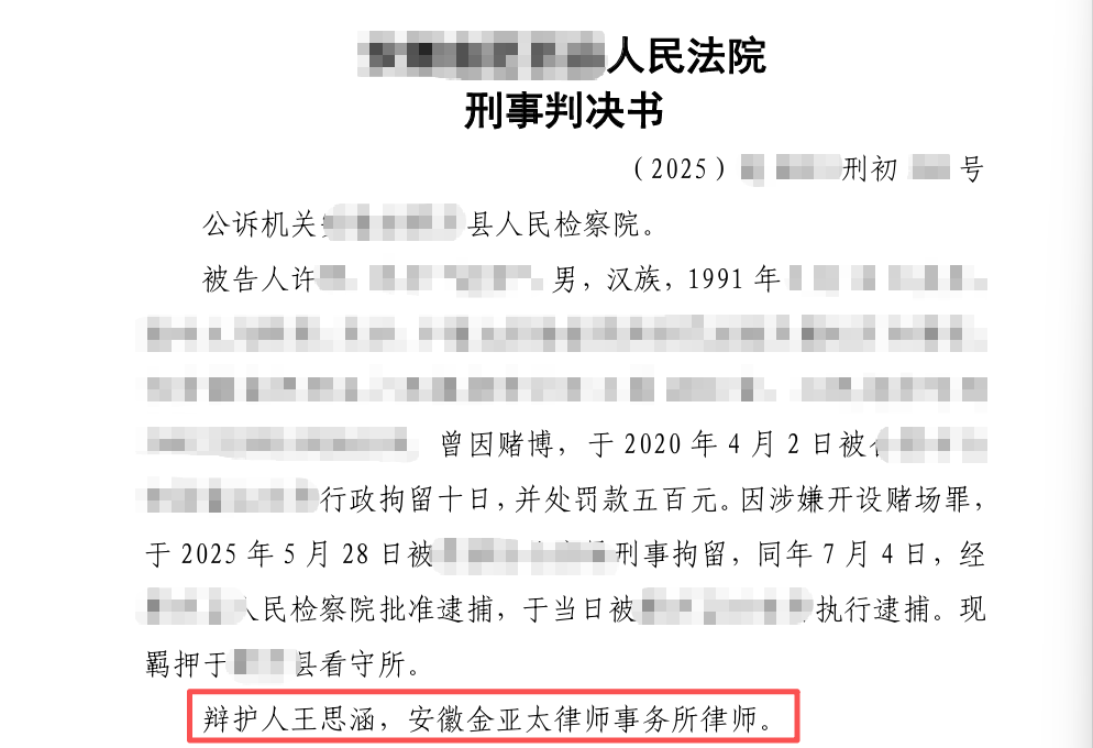 开设赌场罪:指控5年以上改为1年2个月, 王思涵律师获赠锦旗