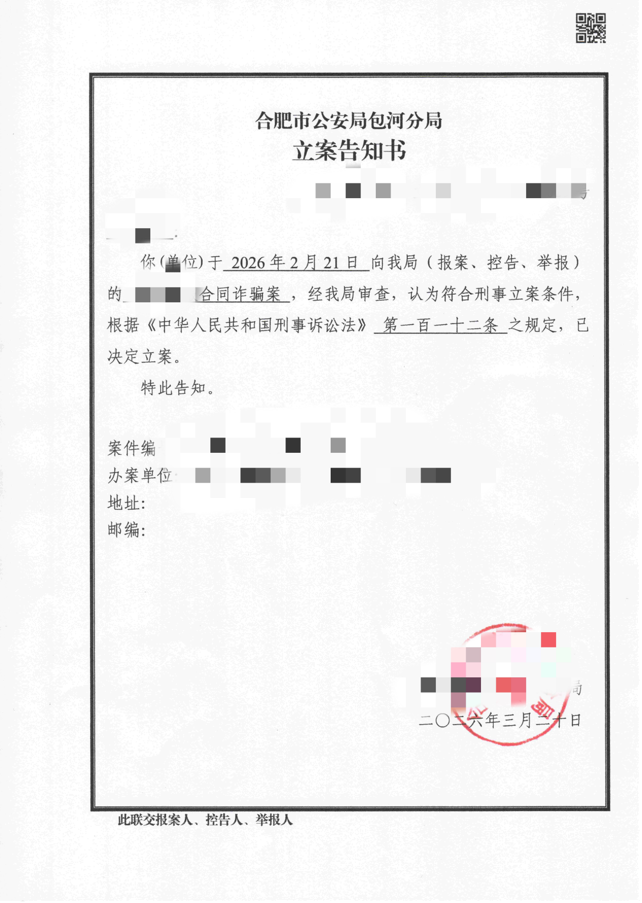 2026年3月,在报案20多天后,走投无路的S某慕名来到安徽金亚太律师事务所寻求法律帮助。胡霄、陈纪伟两位律师第一时间接待了当事人,在耐心听取案件全貌、仔细查阅全部合同及转账凭证后,敏锐地意识到这并非普通的民事合同纠纷,而是一起精心策划的合同诈骗犯罪。