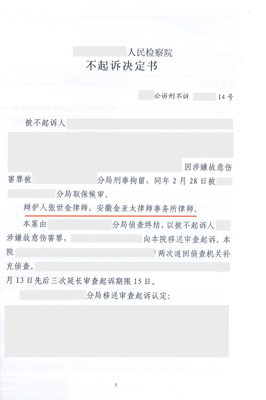 张世金律师:故意伤害案证据不足不起诉 终获无罪