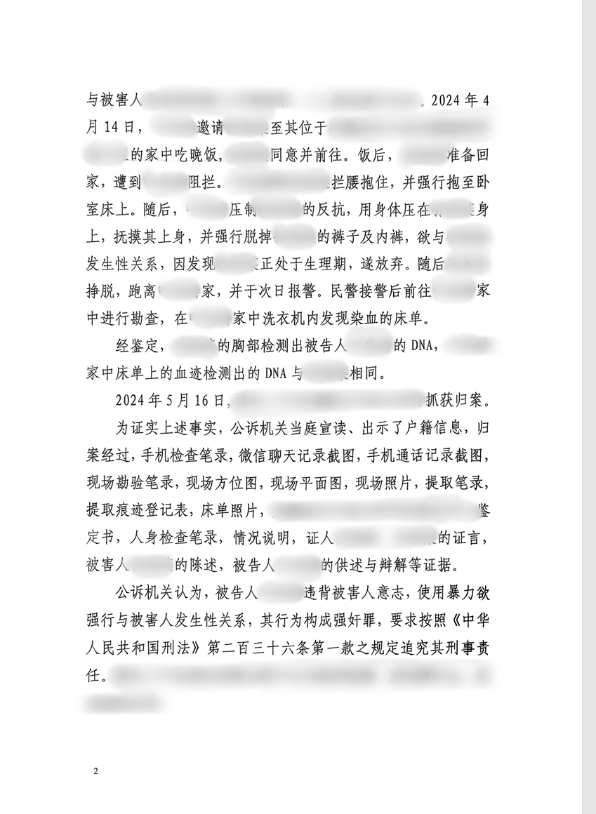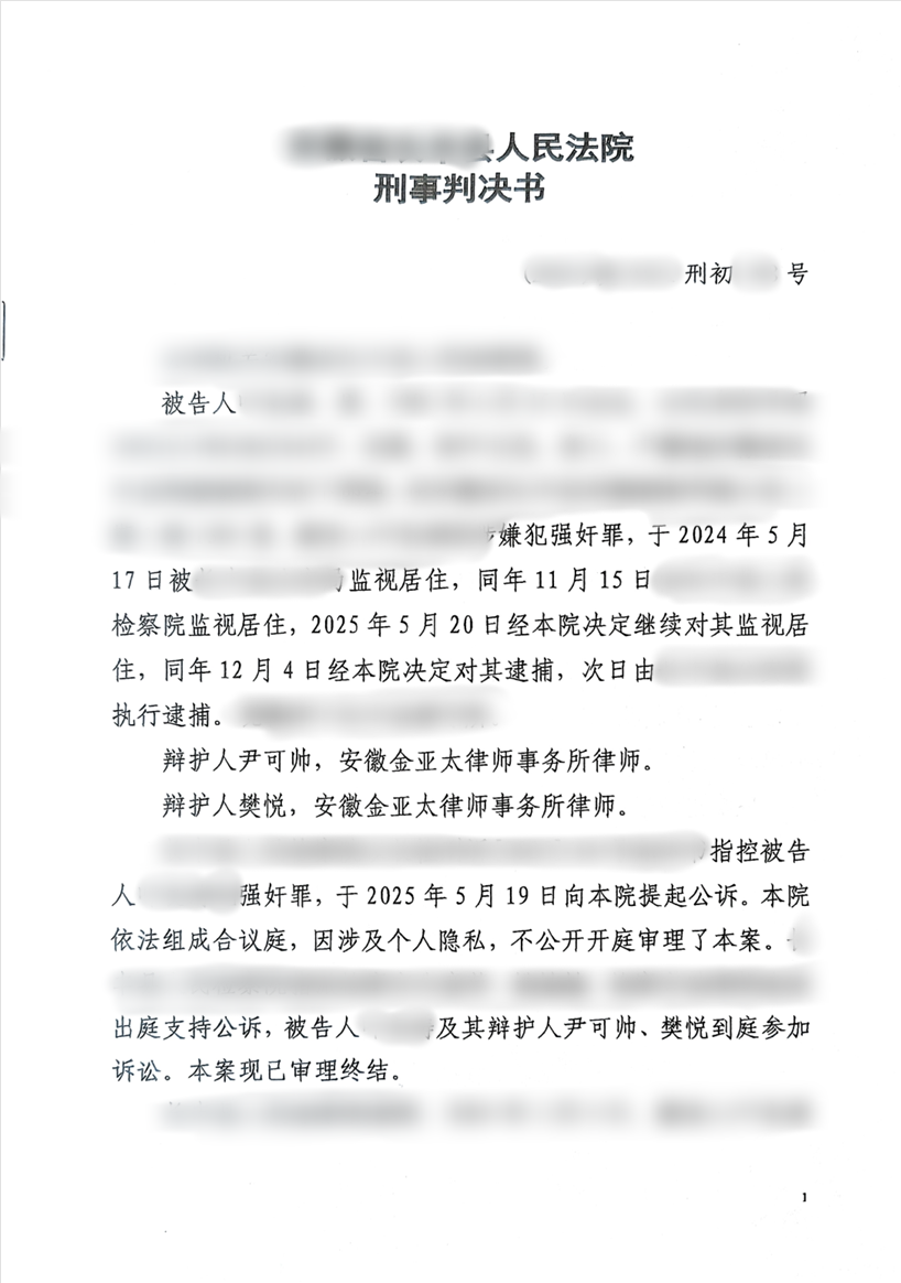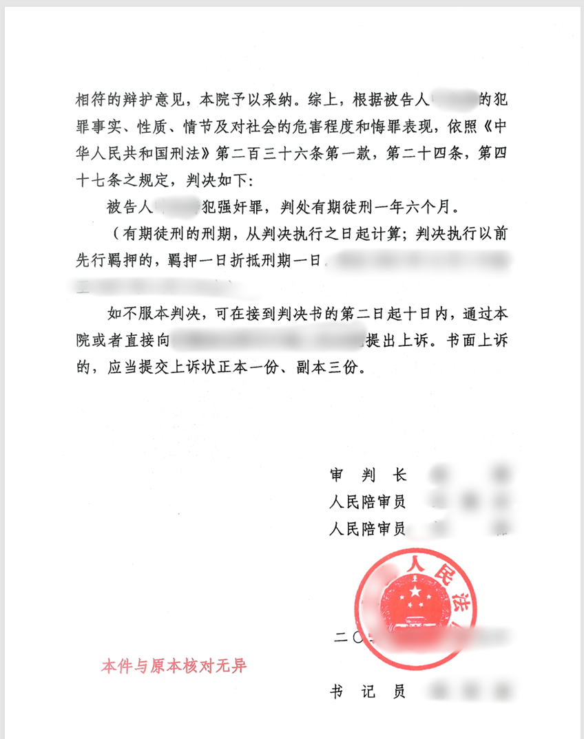 2025年12月5日,一审法院判决被告人系强奸罪中止,有期徒刑一年六个月。