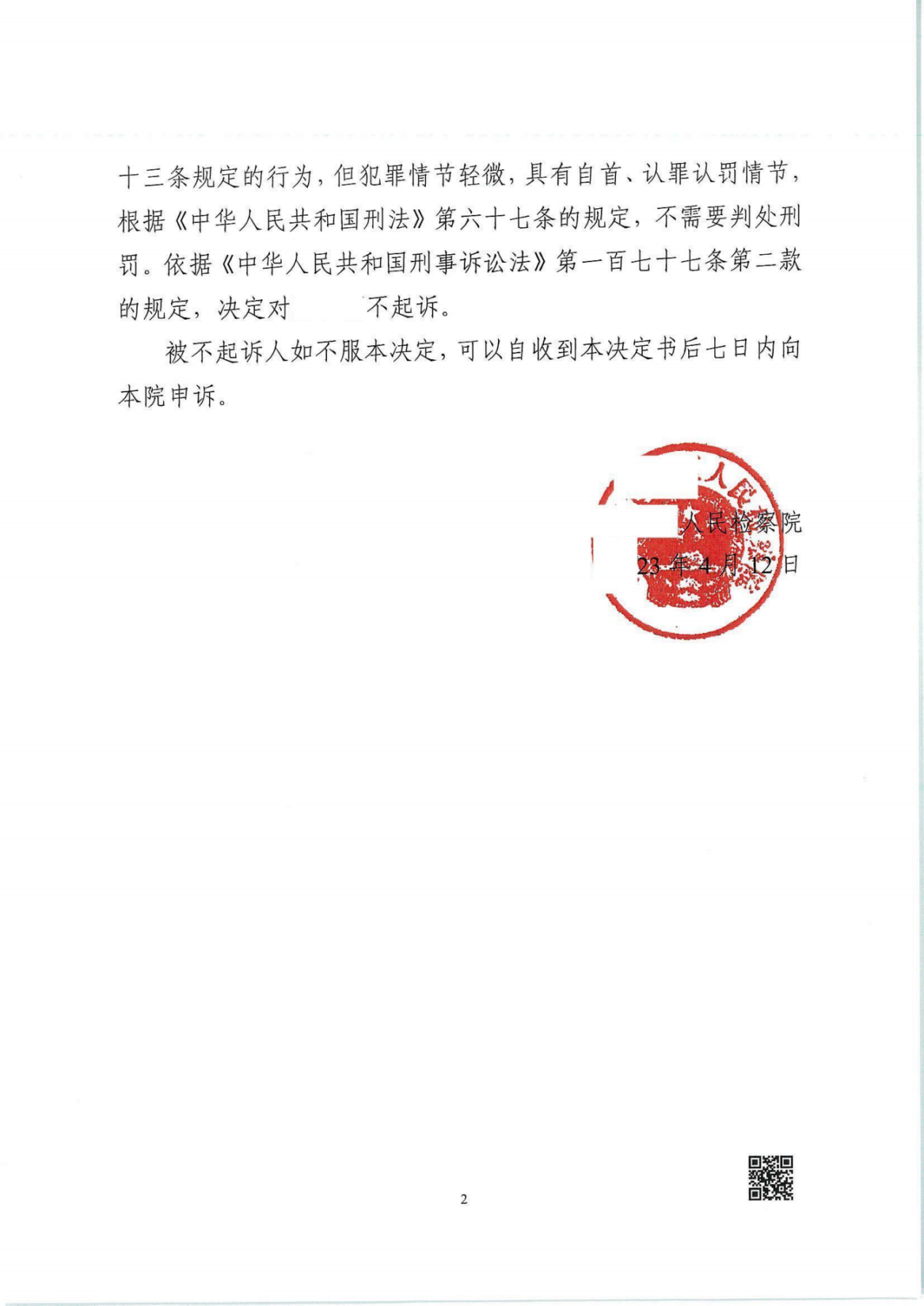 4、检察机关采纳以上辩护意见,并于2023年4月12日对张某某作出不起诉决定。