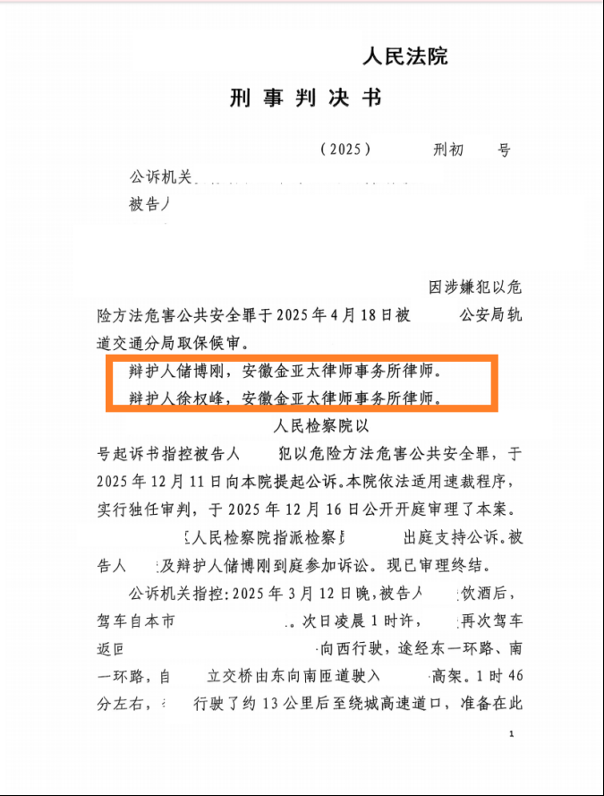 成功案例|徐权峰、储博刚办理酒后高架极速逆行案获缓刑