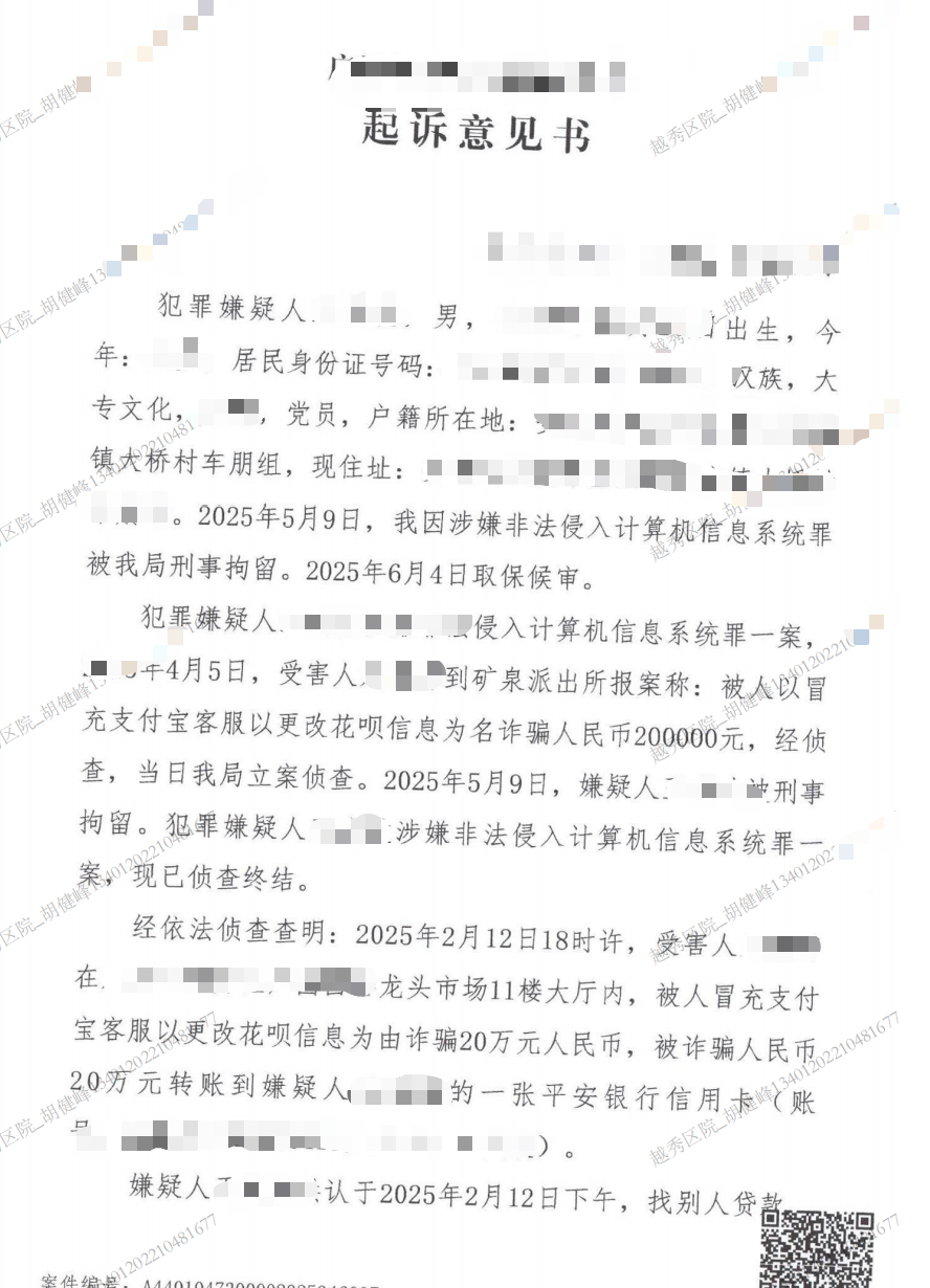 2025年2月12日,受害人刘某某向公安机关报案,称其被他人冒充支付宝客服人员以“更改花呗信息”为由诈骗人民币20万元。经查,该笔资金最终流入嫌疑人W某名下的一张平安银行信用卡。W某系某地人大代表,到案后供述其因办理贷款需要,于当日将银行卡交由他人临时使用,但对资金具体来源及用途并不知情。2025年5月9日,侦查机关以涉嫌“非法侵入计算机信息系统罪”对W某刑事拘留。