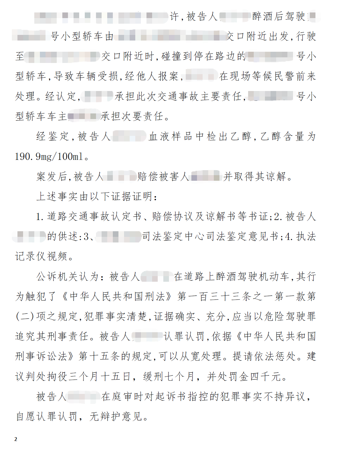 【关键词】酒驾前科、交通事故全责、醉驾、190.9mg/100ml;突破量刑指导意见、缓刑