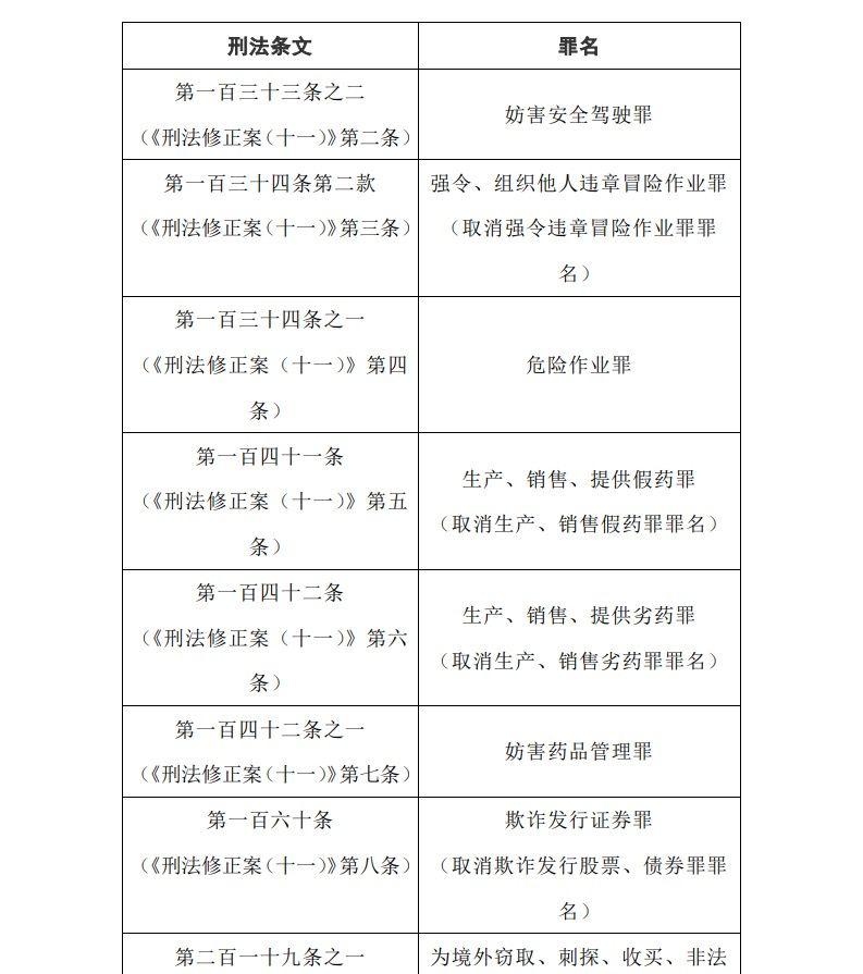 【重磅】最新司法解释:刑法修正案(十一)的罪名公布(2021.3.1起施行)