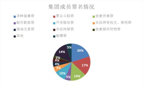 28起黑社会性质组织犯罪集团成员涉及罪名比例图: