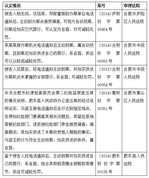 电话通知到案能否认定自首的情况,刑事司法实践中比较混乱,各地法院裁判不一。金亚太律师事务所张世金律师选取了合肥市中级人民法院管辖区域内2013年8月9日-2017年2月24日期间生效的126份一审裁判文书和5份二审裁判文书,共计131份裁判文书,作为研究样本,发现在本次检索的131起刑事案件中,电话通知到案认定被告人具有自首情节的案件有13起,具体列表如下,如果辩护律师承办的受贿案件遇到类似的问题,可以将下列认定自首的刑事判决书提交法庭,作为论证电话通知到案认定自首的依据。