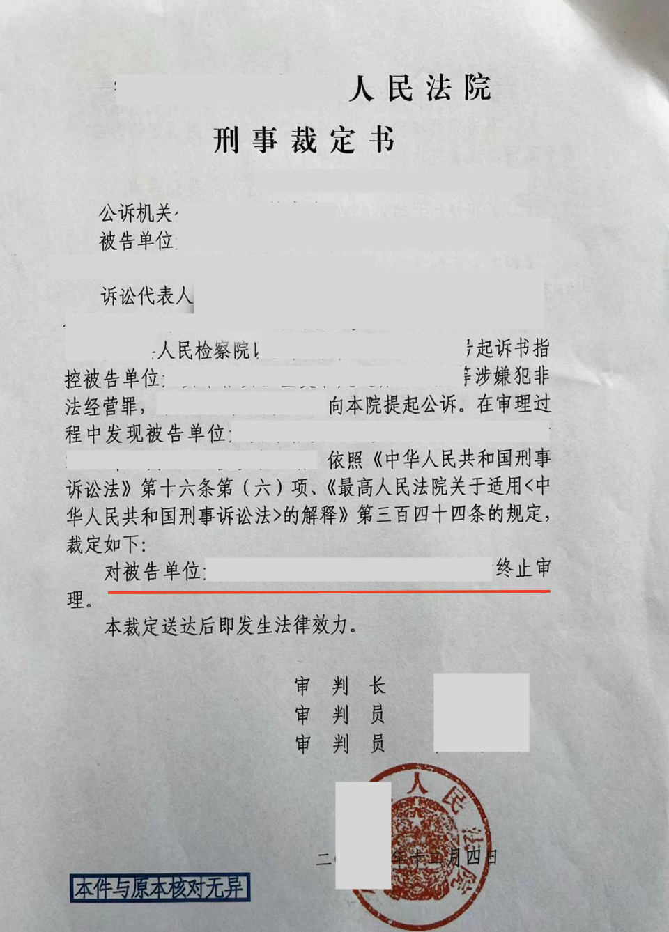 三、终止审理∣J公司涉嫌非法经营案(入围第十届全国十大无罪辩护经典案例)