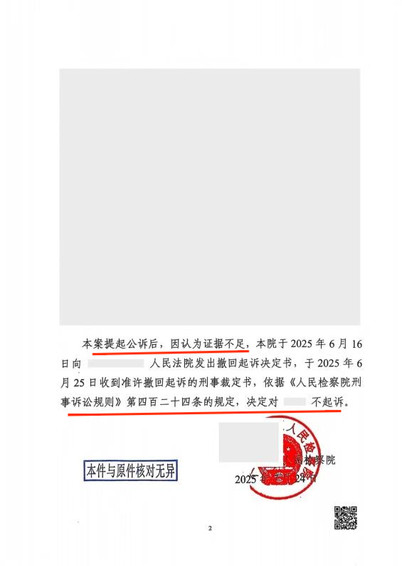 警察邹某滥用职权案经过法院开庭审理,拟宣判无罪,而后检察院以证据不足为由撤回起诉,法院裁定准许检察院撤回起诉,检察院以证据不足为由作出不起诉决定,终获无罪。值得一提的是,本案被评选为金亚太律师事务所2025年度刑事十佳案例。