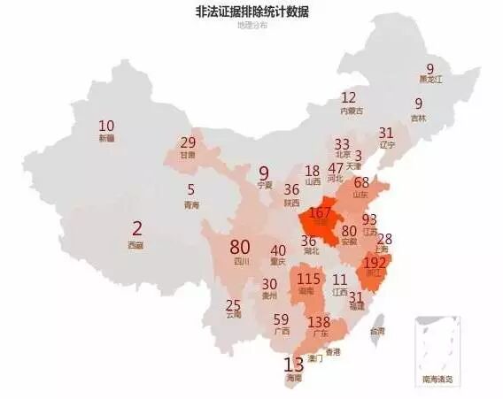 为何会出现这种分布状况,最有可能的原因是:中东部地区由于经济比较发达,被告人获得律师帮助的比例比较高;通常来说,由于大多数刑事案件被告人都没有受过专门法律训练,因此越是有律师介入的案件,提出非法证据排除申请的可能性越大;在中国,被告人获得律师帮助的比例不超过30%;[3]西部地区更低于这个比例;因此西部地区非法证据排除案件数较少的原因之一可能是由于西部地区被告人获得律师帮助的案件比例较低的缘故。