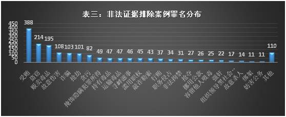 除此以外,法院还在1个案件中排除了被告人在被关押期间写的欠条,在1个案件中排除了辩护人提交在犯罪嫌疑人在被关押期间传递给其他犯罪嫌疑人的函件,在1个案件中排除了电话录音,在1个案件中排除了录音录像资料。