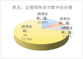 在136个决定排除非法证据的案件中,因非法证据排除导致被告人被宣告无罪的案件为17件,占12.50%;涉及非法证据排除而导致部分事实不予认定的案件9件,占6.62%;发回重审的11件,占8.08%;法院依据其他证据仍然实现对被告人定罪的99件,占72.79%。