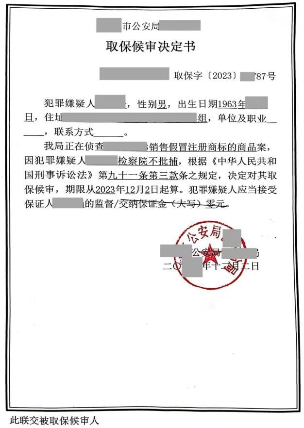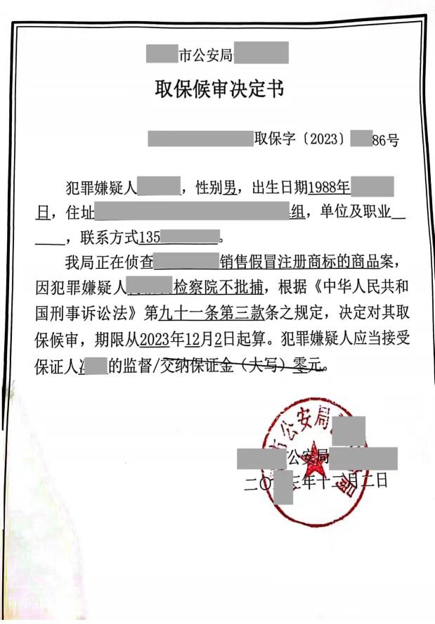 【不予逮捕 取保候审】金亚太律师为涉嫌销售假冒 注册商标的商品罪当事人成功取保